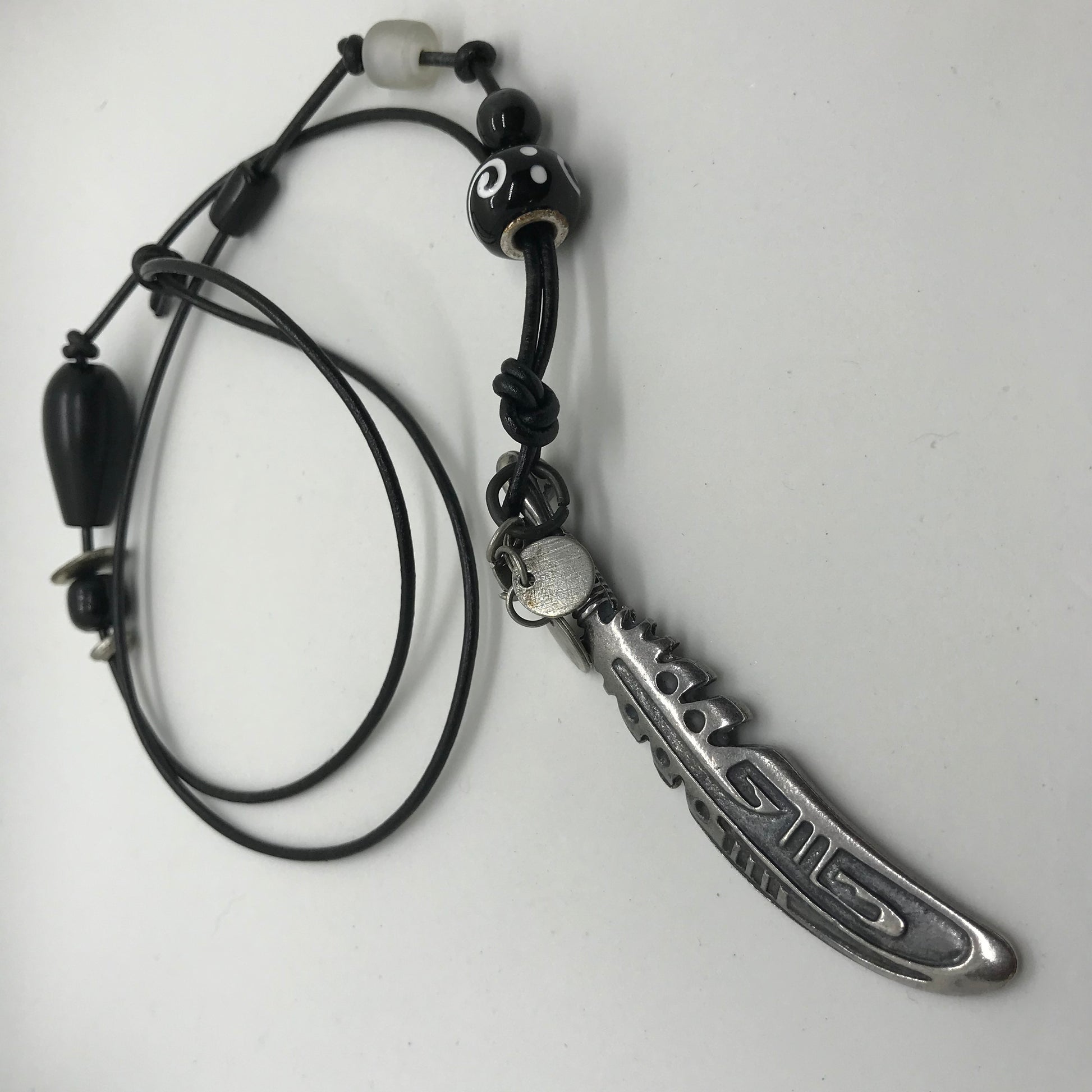 Afsluttes med små sølvmønter og en dekoreret sabel. Super cool halskæde.