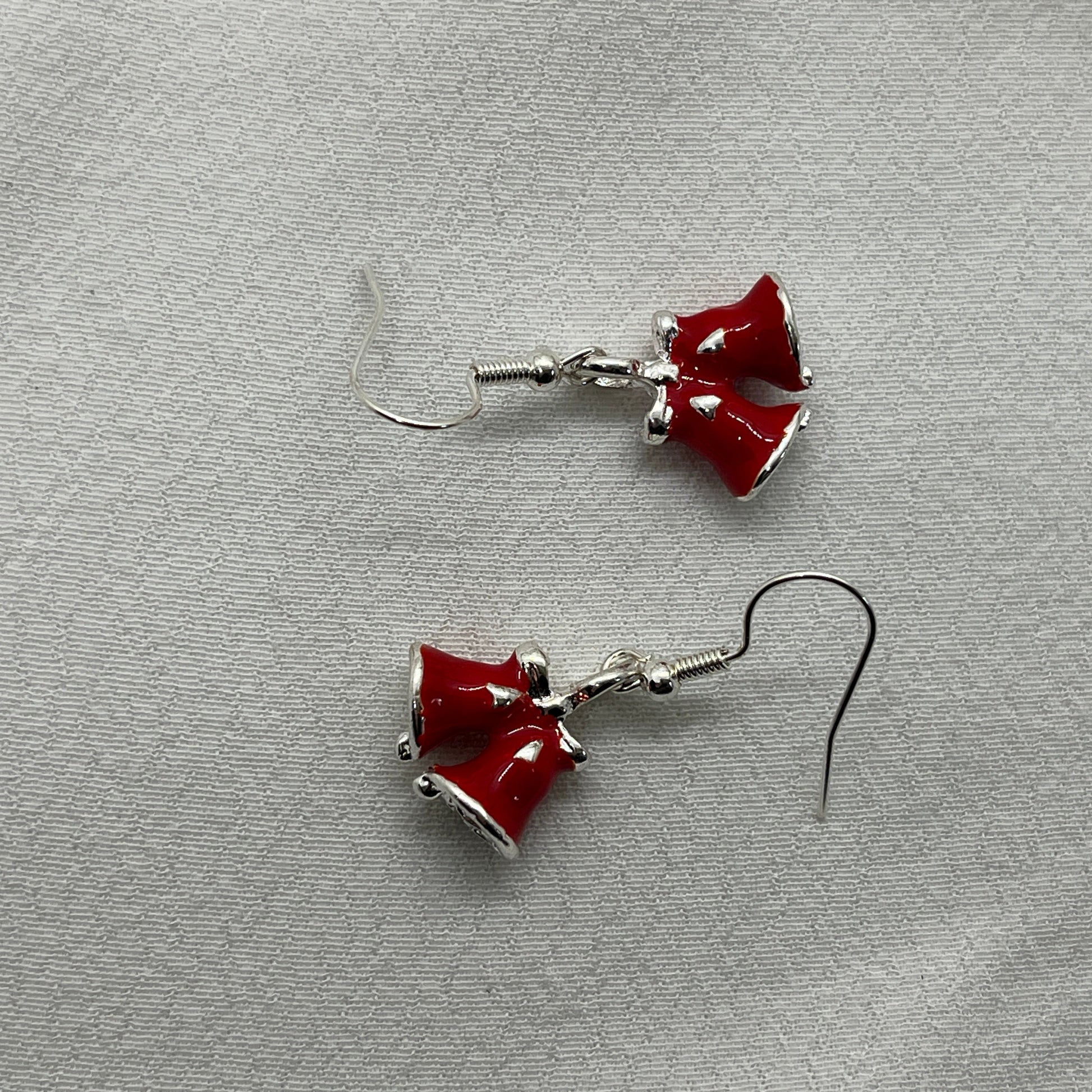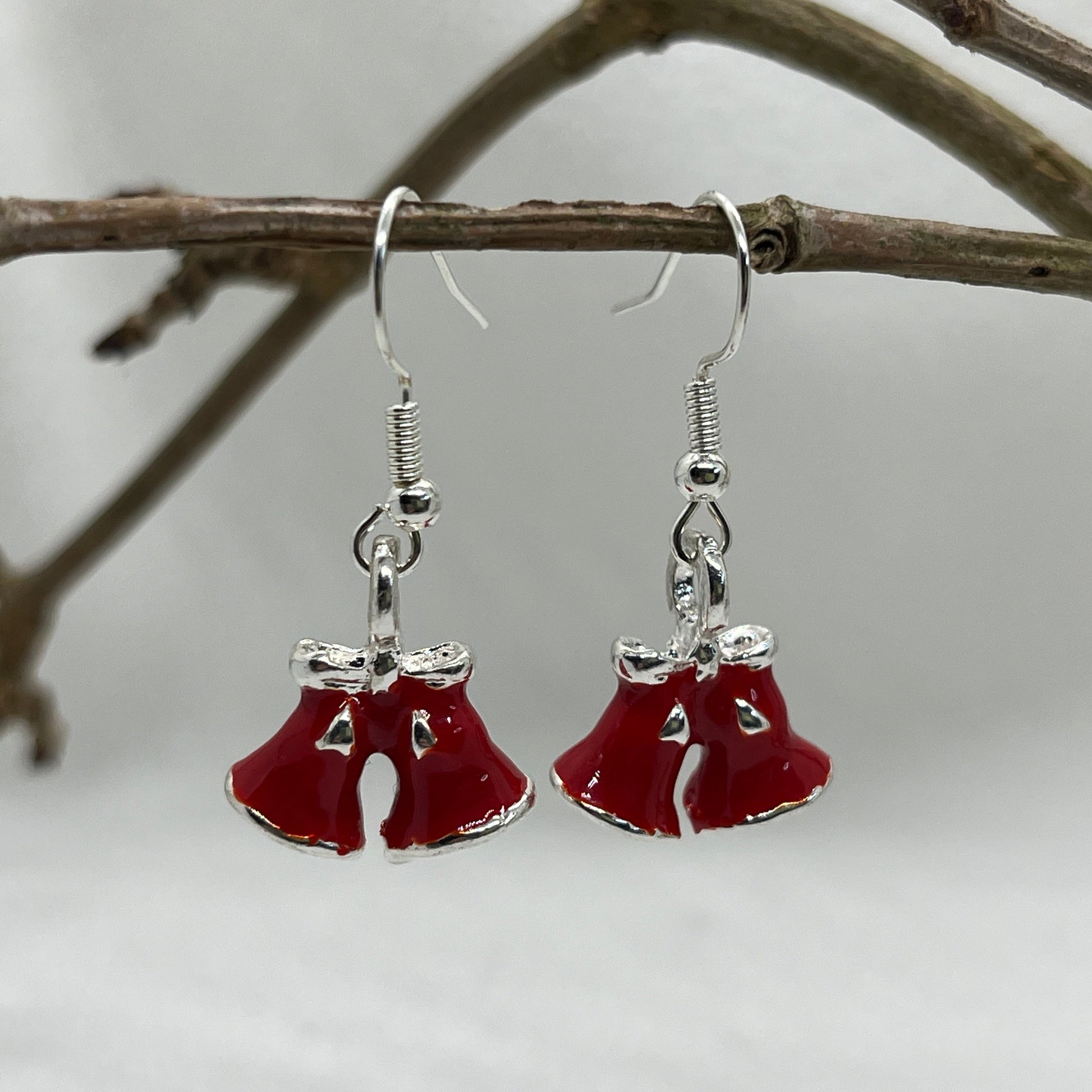 Ding dong, søde røde juleklokker på sølv ørekrog.