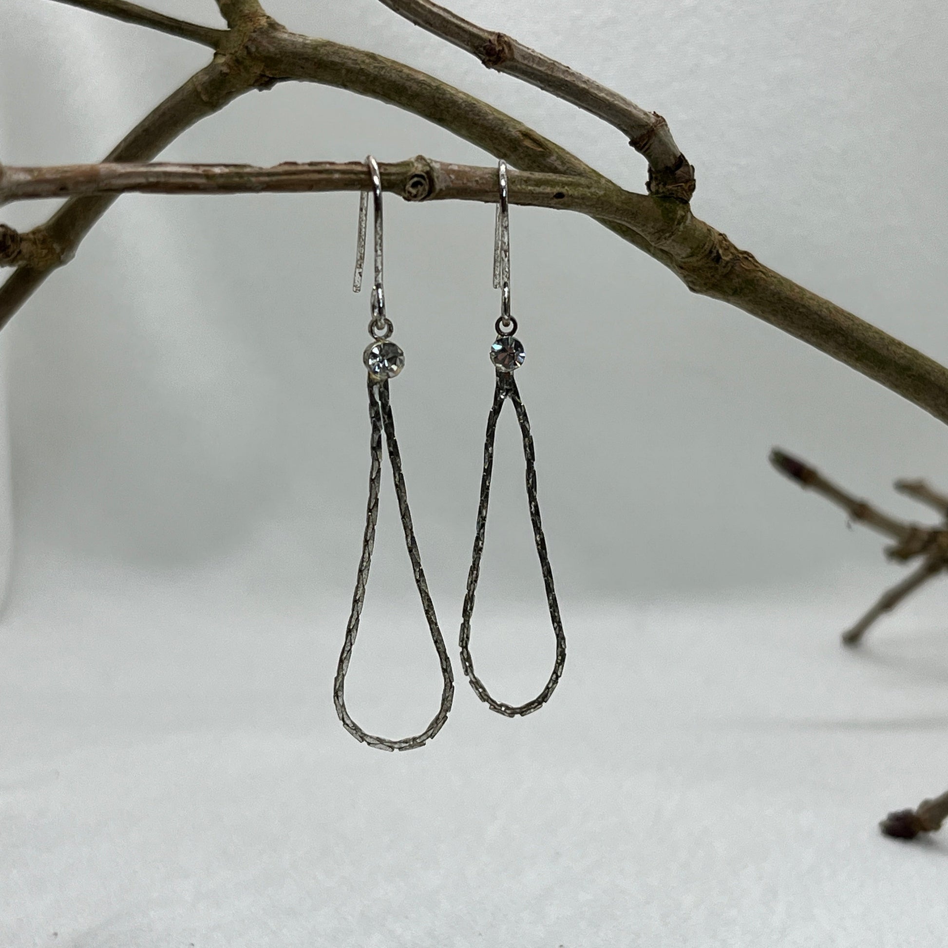 Ægte sølv ørering hvor vedhænget har en Zirkon der hænger sammen med en lille flad kæde der danner et loop. Meget klassisk smuk ørering.