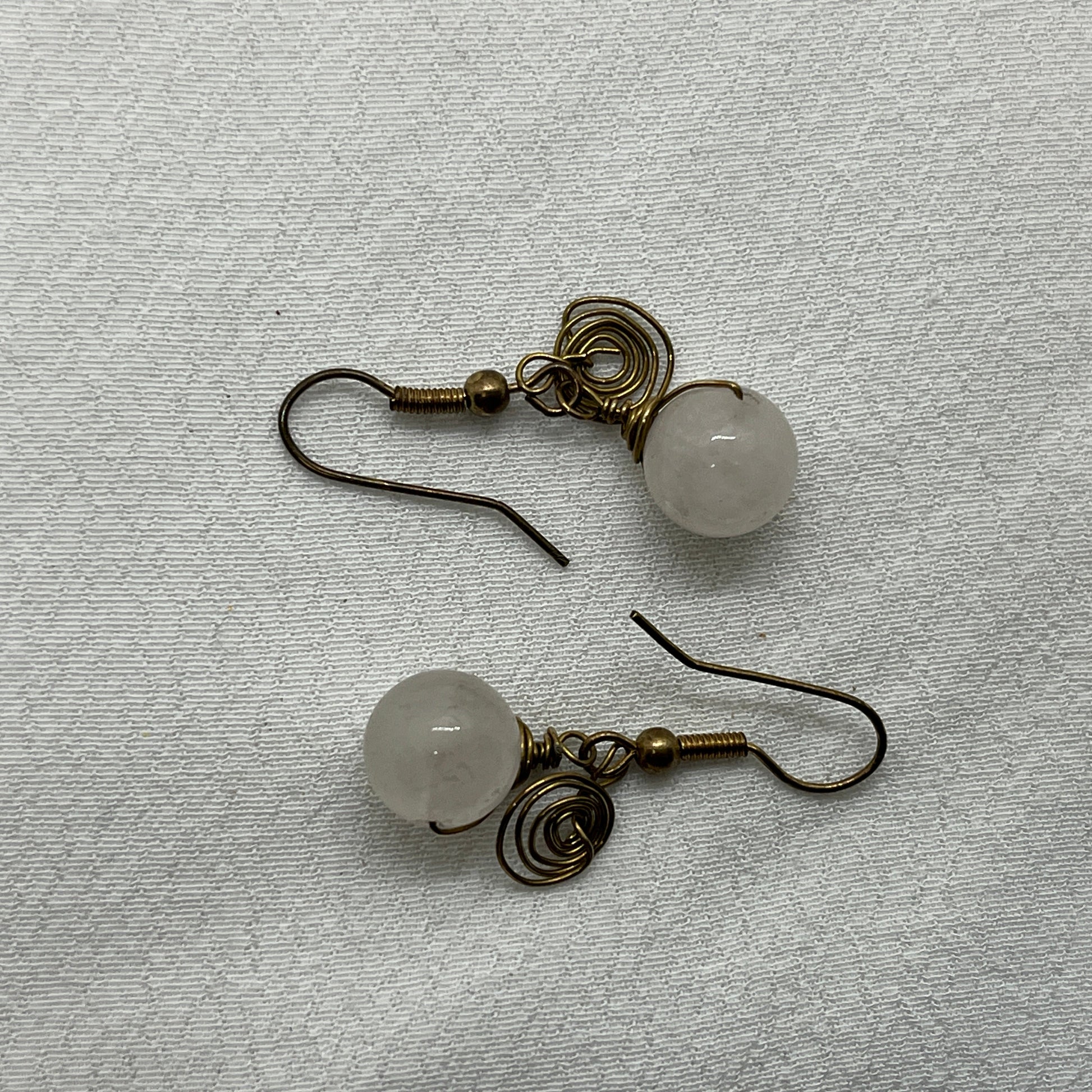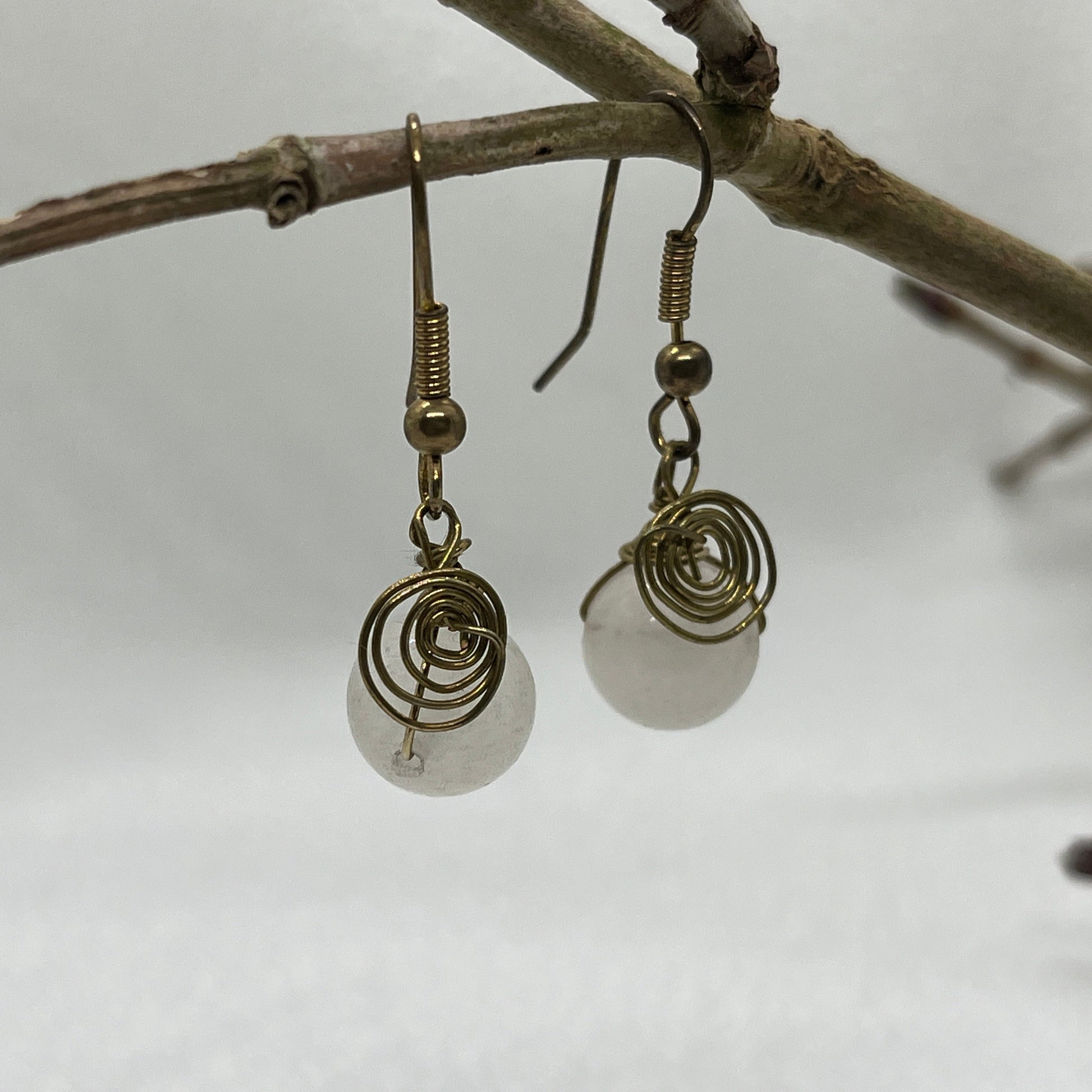 Messing ørering med en smuk 10 mm Rosenkvarts, denne sidder side om side med en messing swirvel.