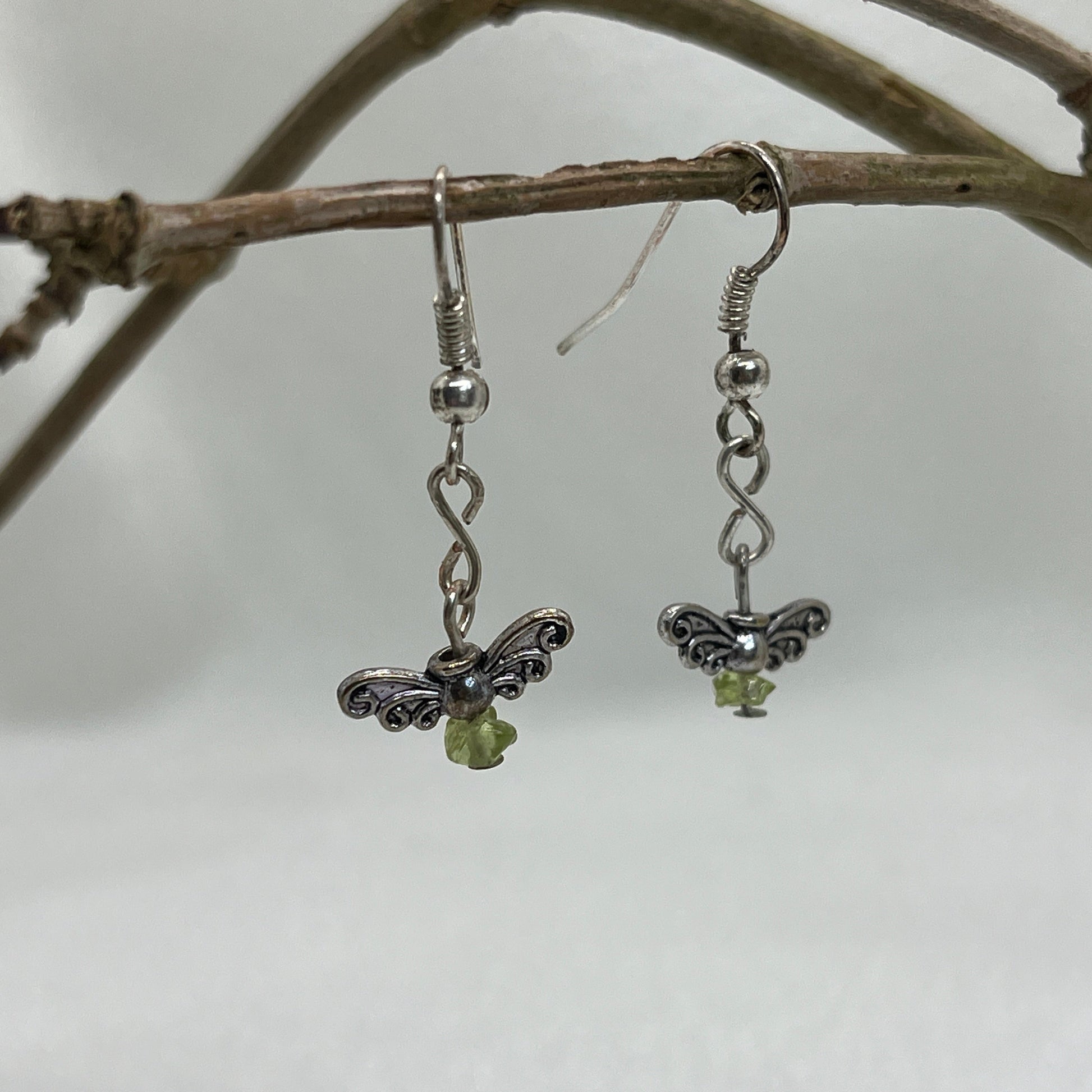 Sølv ørering med grøn engel