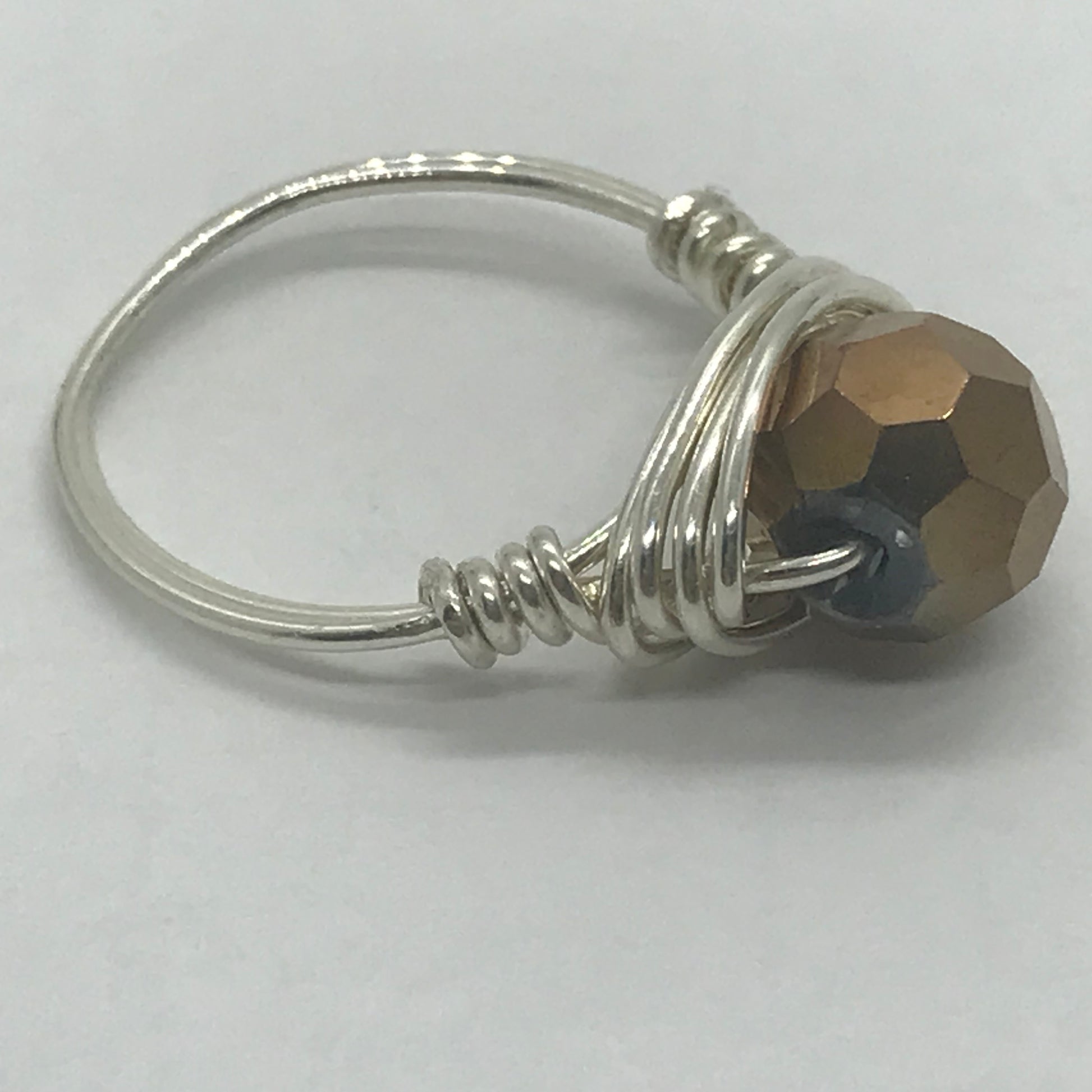 Smuk fingerring i ægte sølvtråd. Trådene er viklet om en smuk facetteret bronzefarvet perle