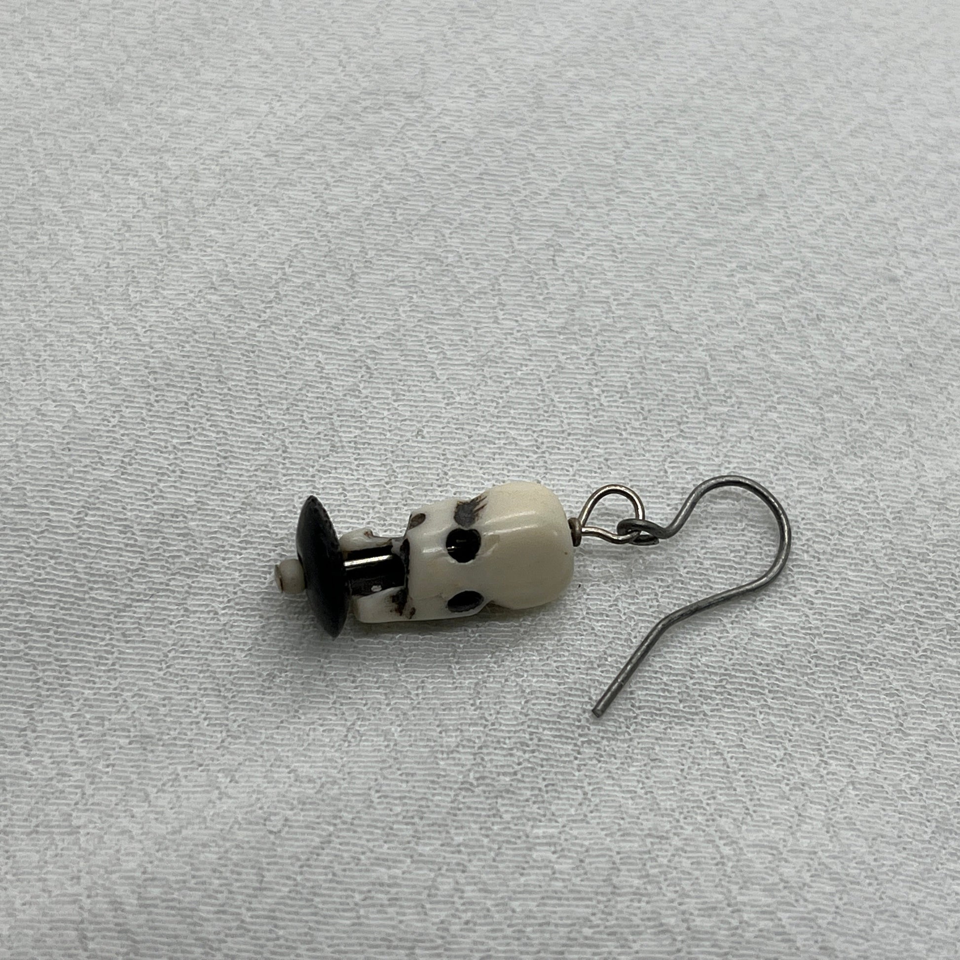 Single ørering i metal. Rigtig halloween ørering med et lille hvidt kranium der er "delvis nedbrudt" uuhhh.. afsluttet med en elipseformet sort perle..Cool og uhyggelig men også lidt sød.