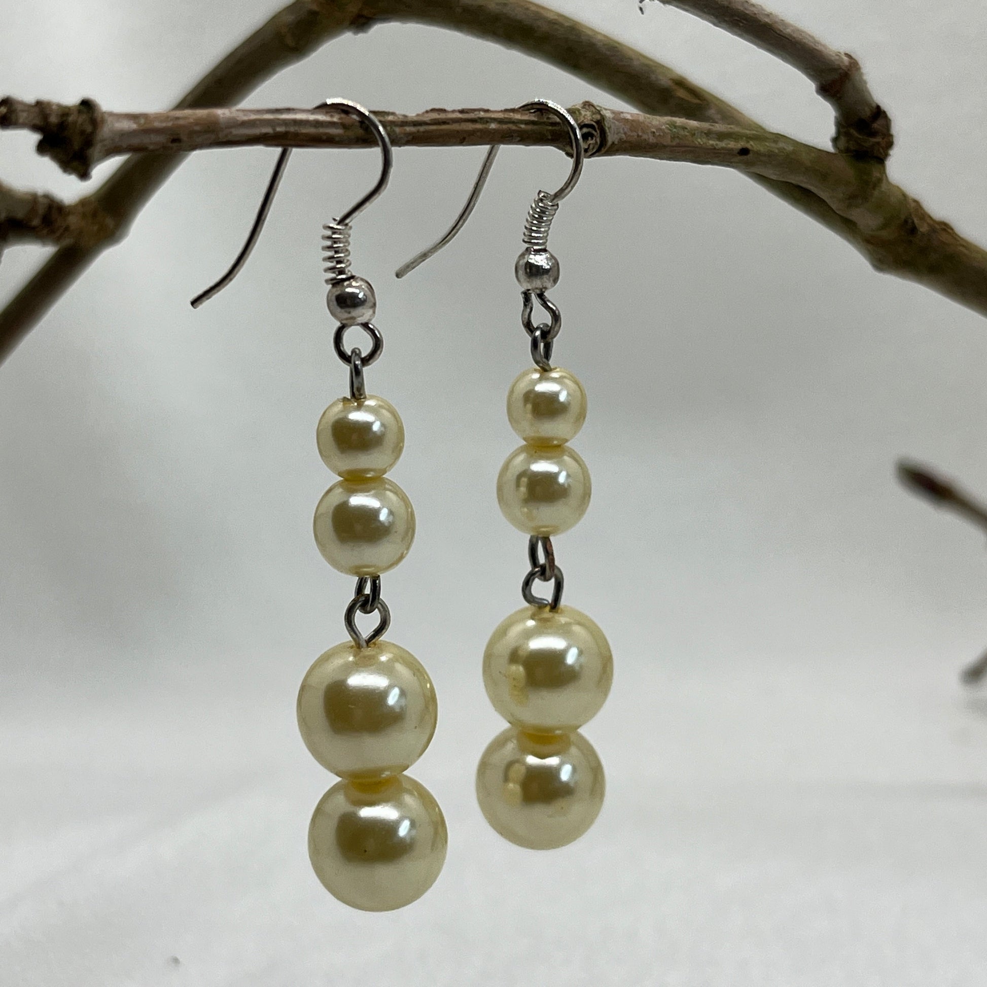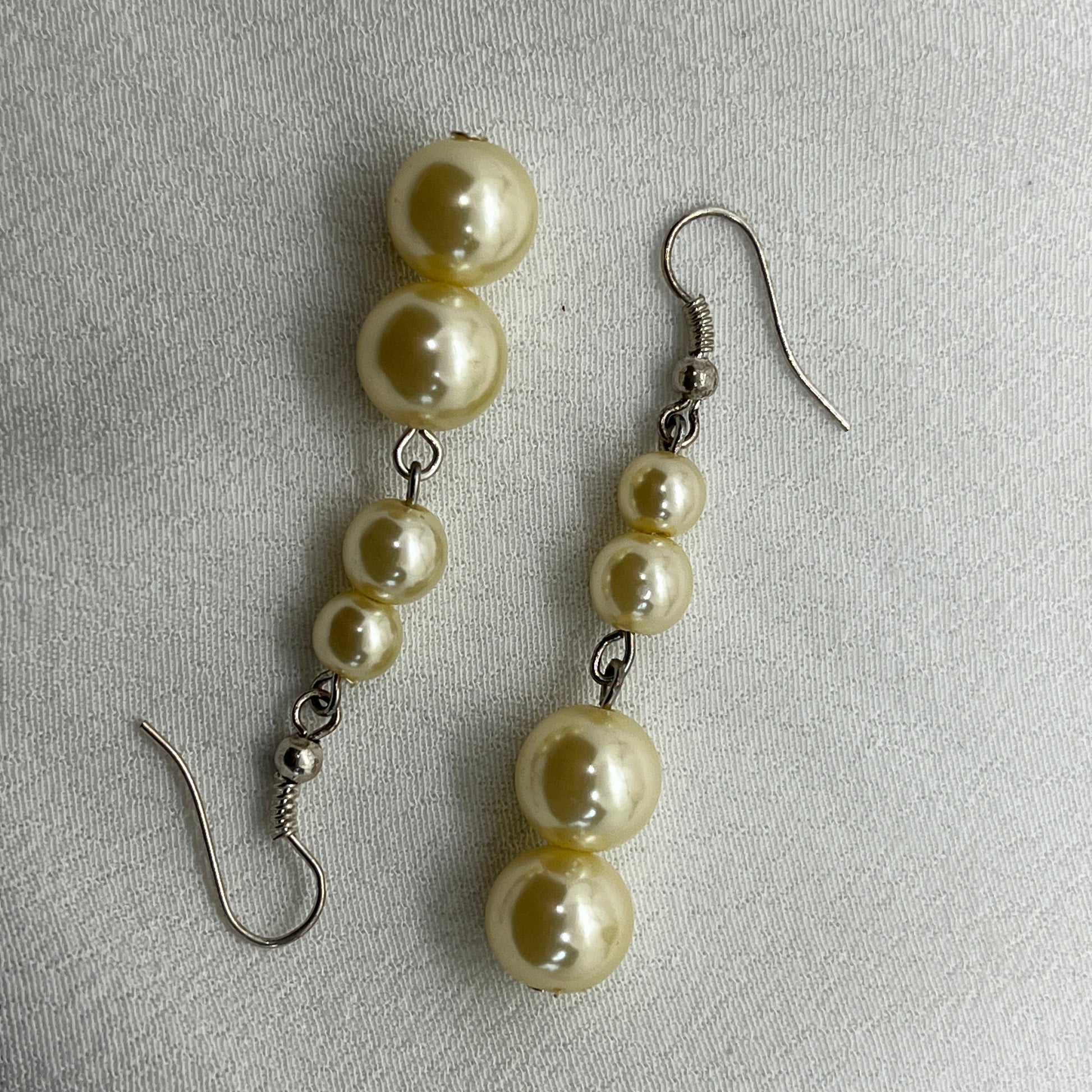 Fine sølv øreringe med 4 perler i ægte forklædning aka perlemorsperler.. De er i virkeligheden bare i akryl, men fine er de.