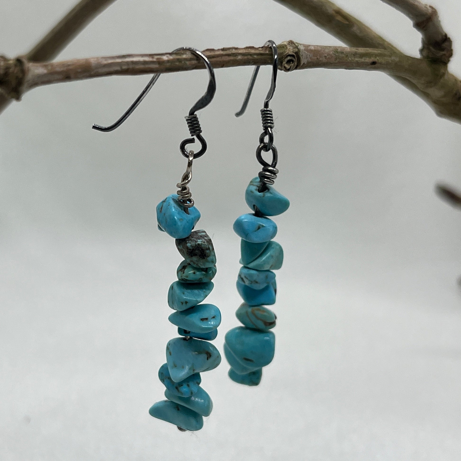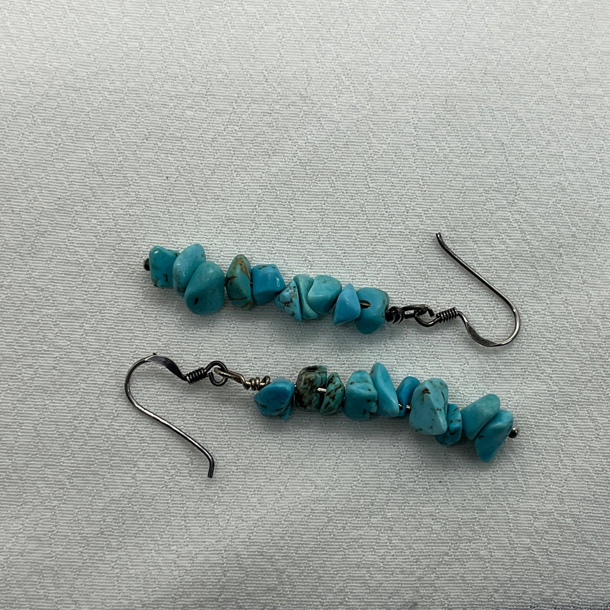 Øreringe i ægte sølv med en masse små Turkiser på sølv perlestilk.