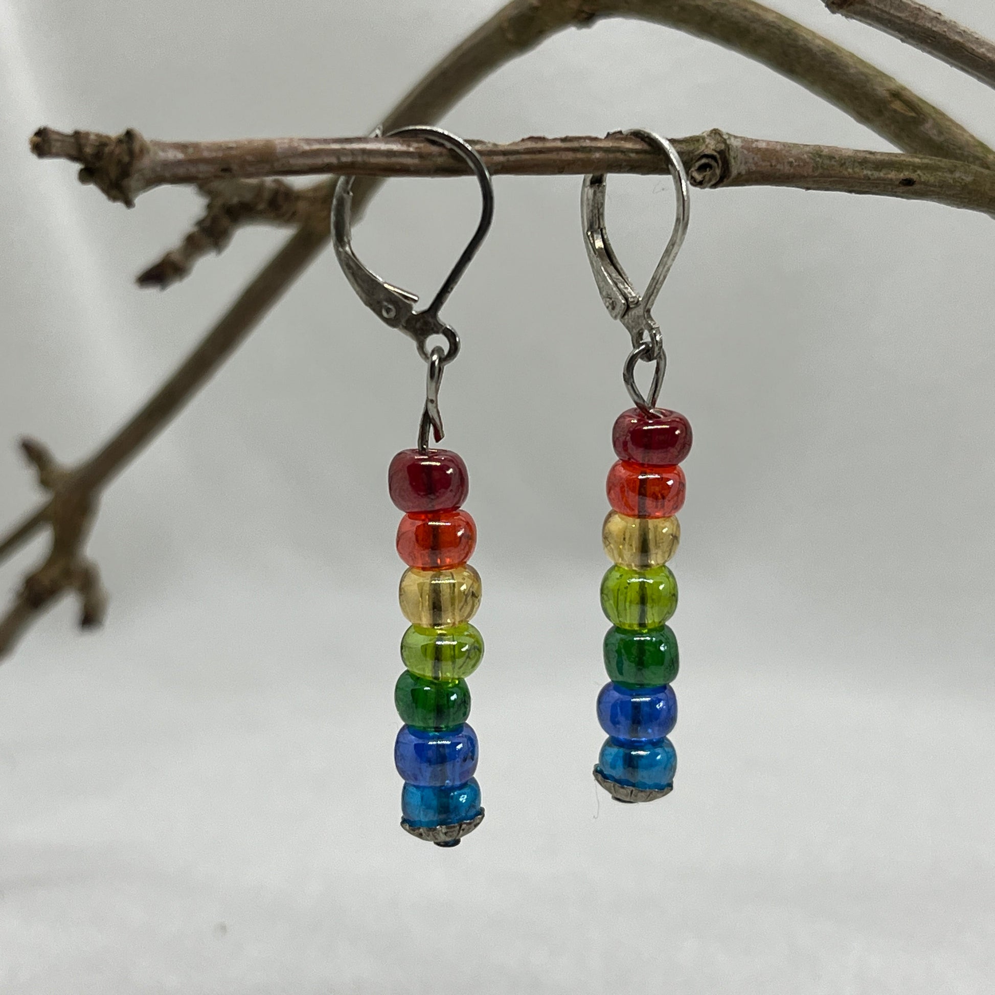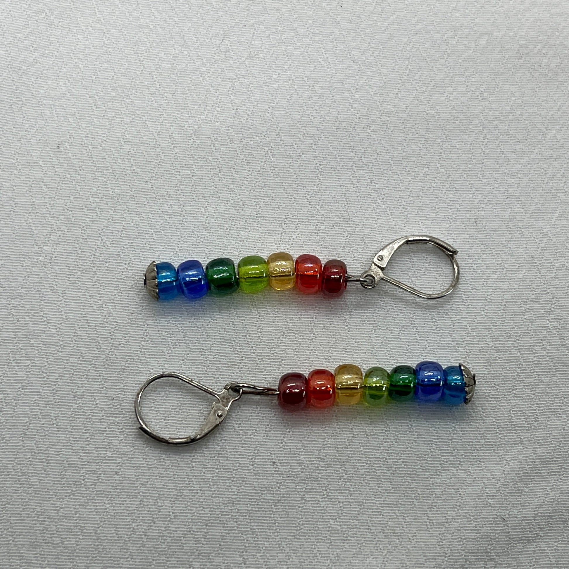 Øreringe i sølv brioche med hele regnbuens farver serveret på en sølvstilk.