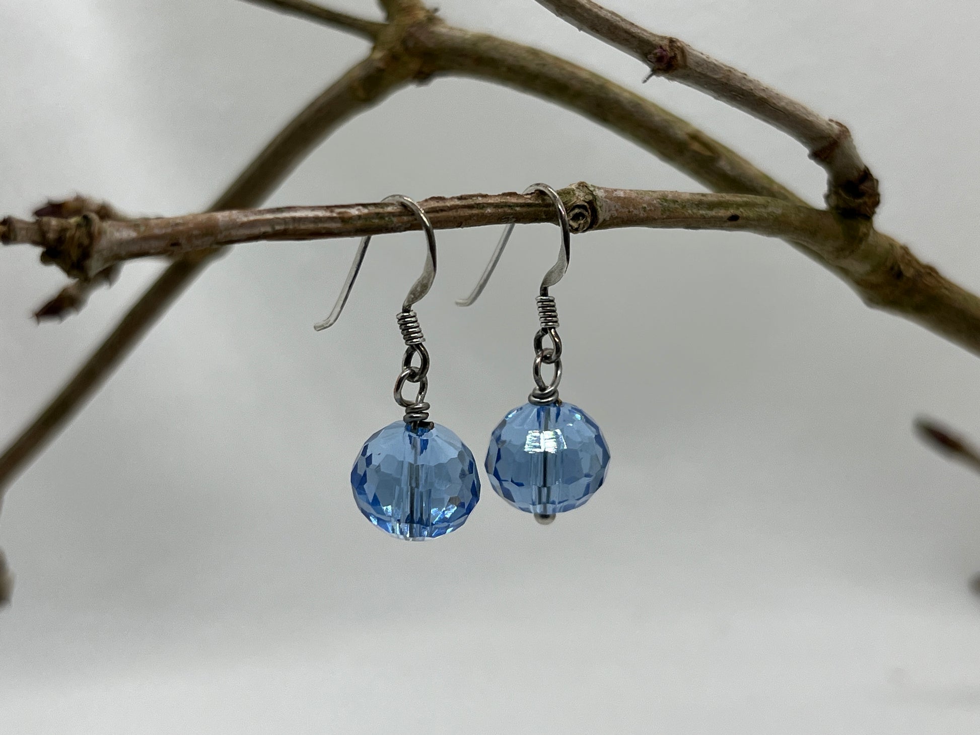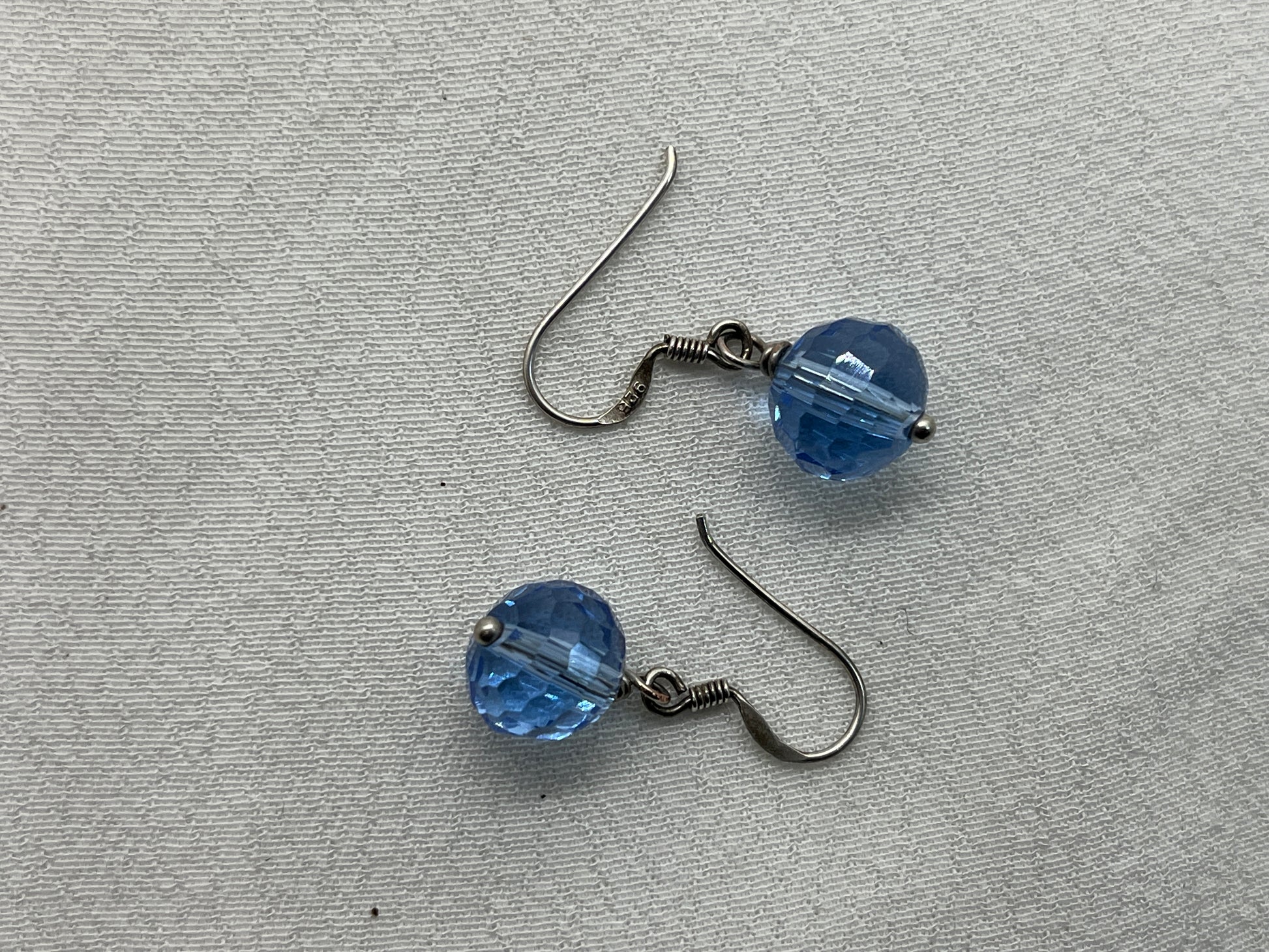 Ægte sølv øreringe med smukke klare blå multifacetterede krystaller, så blå at de næsten skinner.