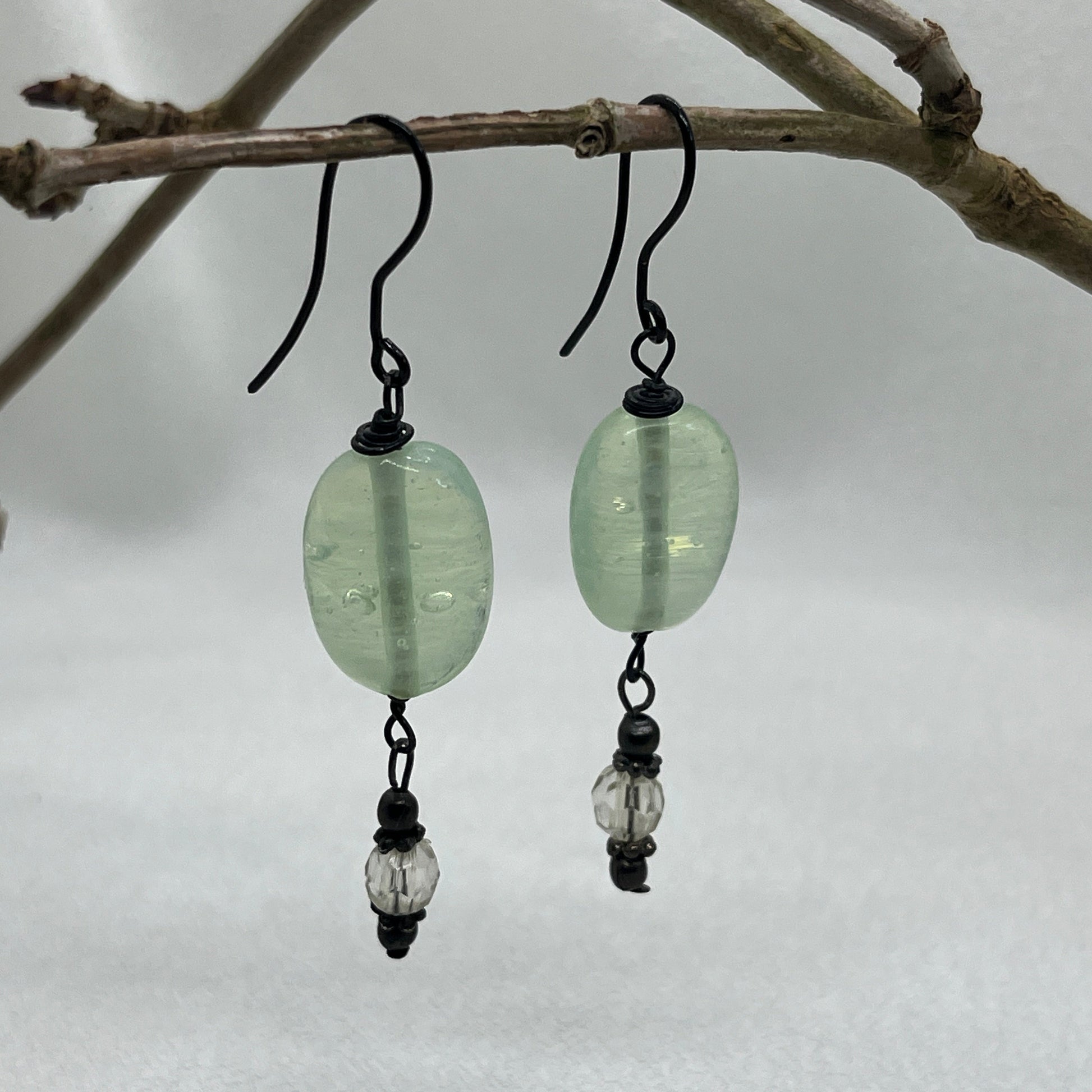 Sorte øreringe med grøn perle