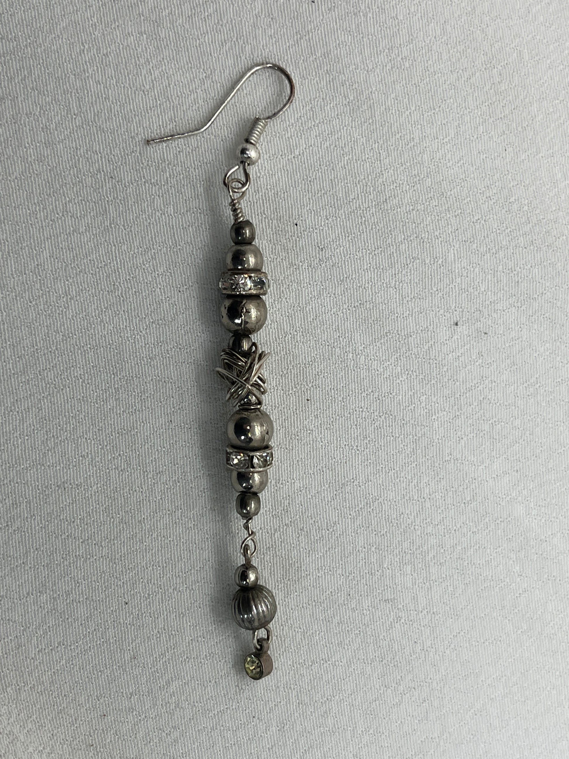 Single ørering i sølv med super flotte metal og sølvperler. Der er både perler med similisten og masser af bling.