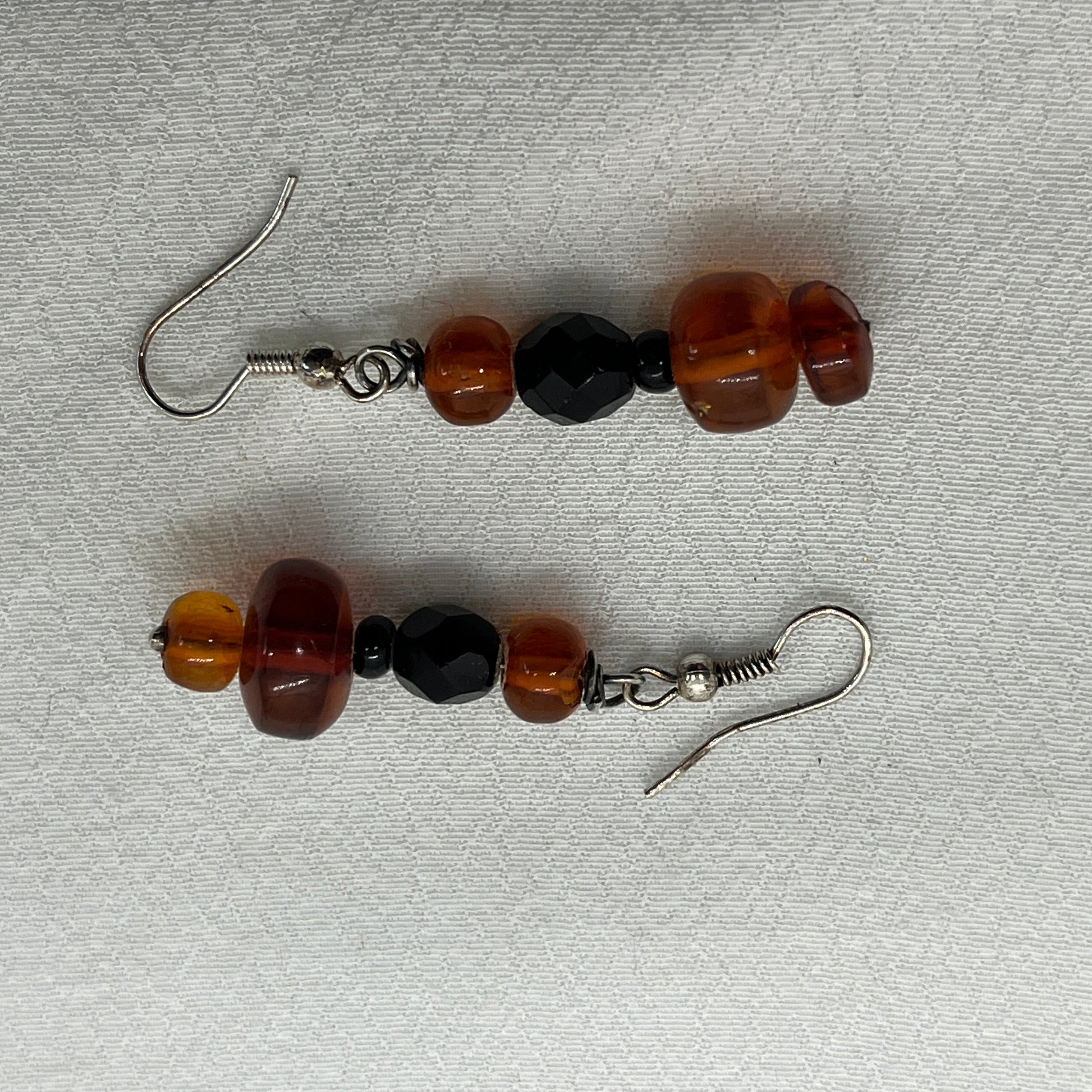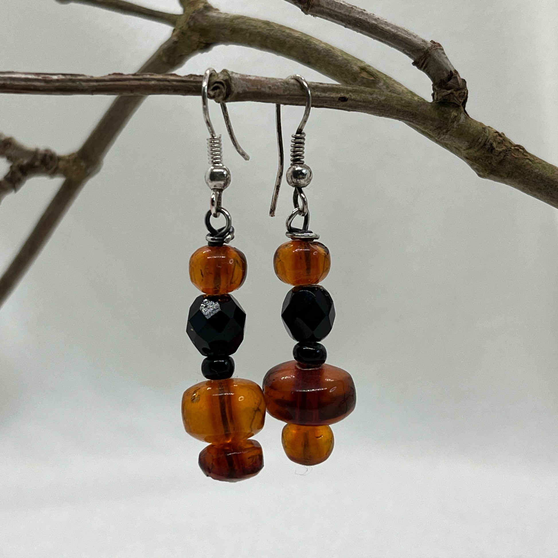 Øreringe i sølv med resin perler og en sort facetteret glasperle.